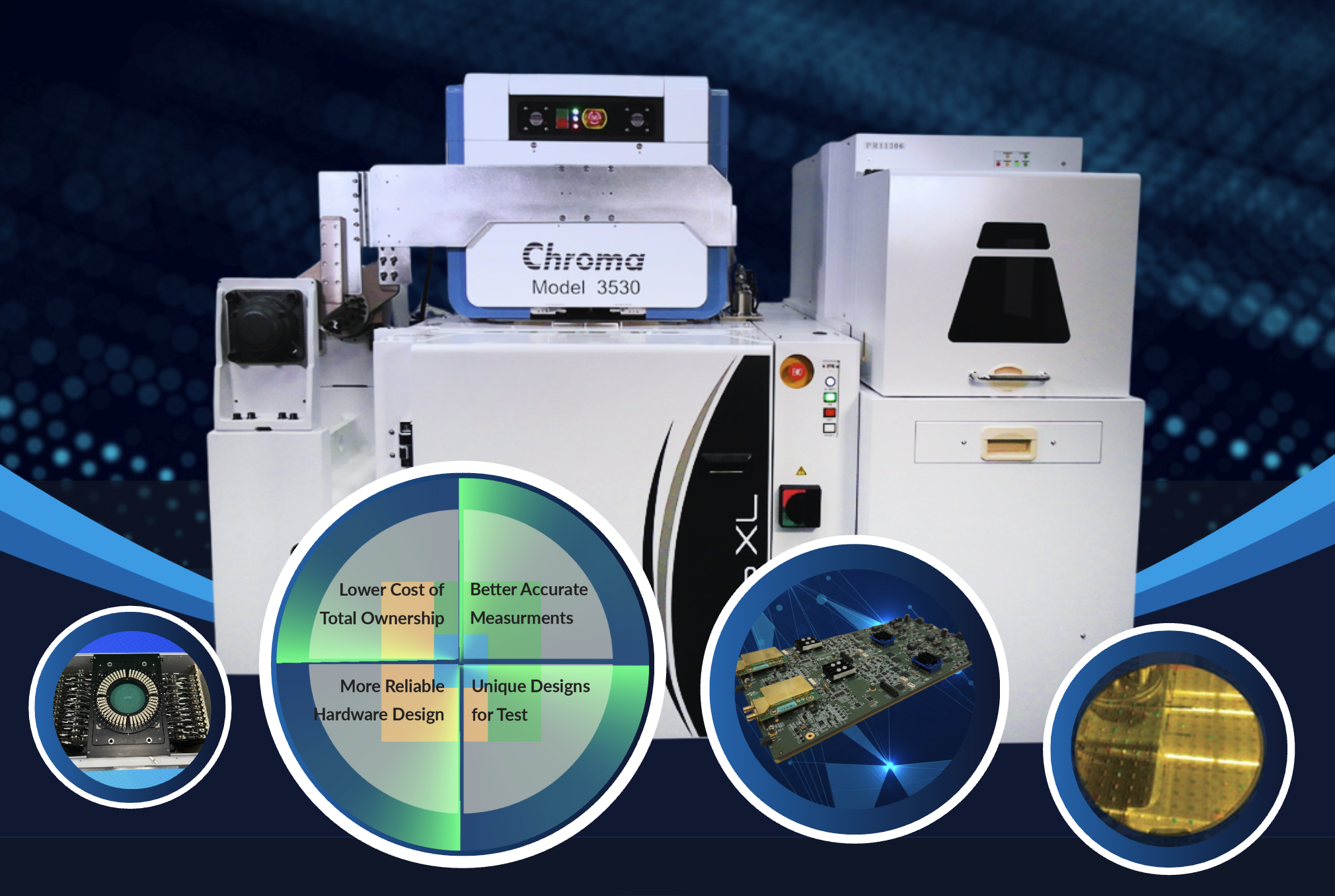 The Choma 3530 Parametric Test System is a paradigm shift in wafer testing. Eery design feature produces lower cost per wafer, increased test quality and uncompromised coverage